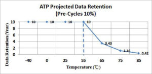 Temperature affects NAND flash memory and data retention in the cards, causing fluctuations in their ability to hold a charge. When a card’s ability to hold a charge degrades, the vulnerability affects its ability to retain data. This is because cells that are not charged frequently could leak existing charge. If a cell loses charge, its voltage level and corresponding logic bit will change, potentially resulting in a loss in data integrity. (see chart below)