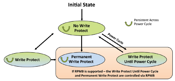 - Secured Write Protect capability. RPMB restricts the use of the Write Protect features, Permanent Write Protect and Write Protect Until Power Cycle, to occur after performing RPMB authentication.