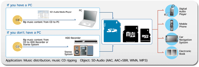 SD-Audio provides the codecs and file format necessary to transfer, store or download audio files on mobile phones and other devices.